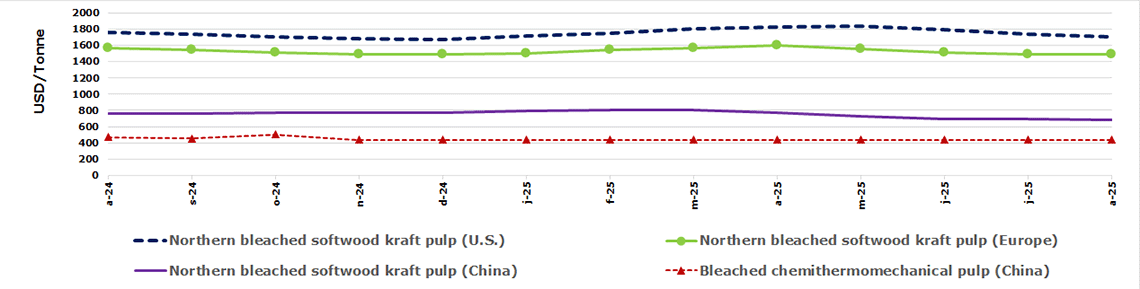Northern bleached softwood kraft pulp (U.S.) | 1,700 | 1,740 | 1,743 | 1,745 |