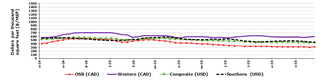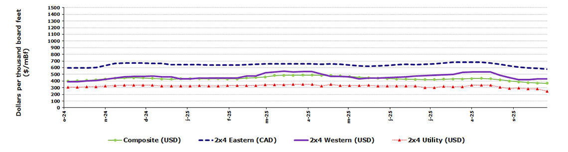Dollars per thousand board feet | September 26, 2025 | September 19, 2025 | 4-week average | 52-weeks average |