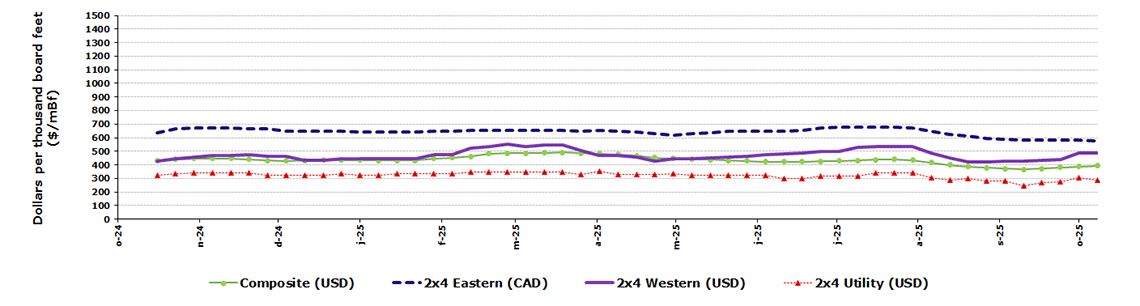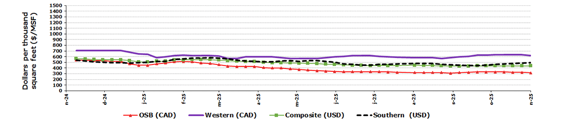 Dollars per thousand board feet | November 21, 2025 | November 14, 2025 | 4-week average | 52-weeks average |