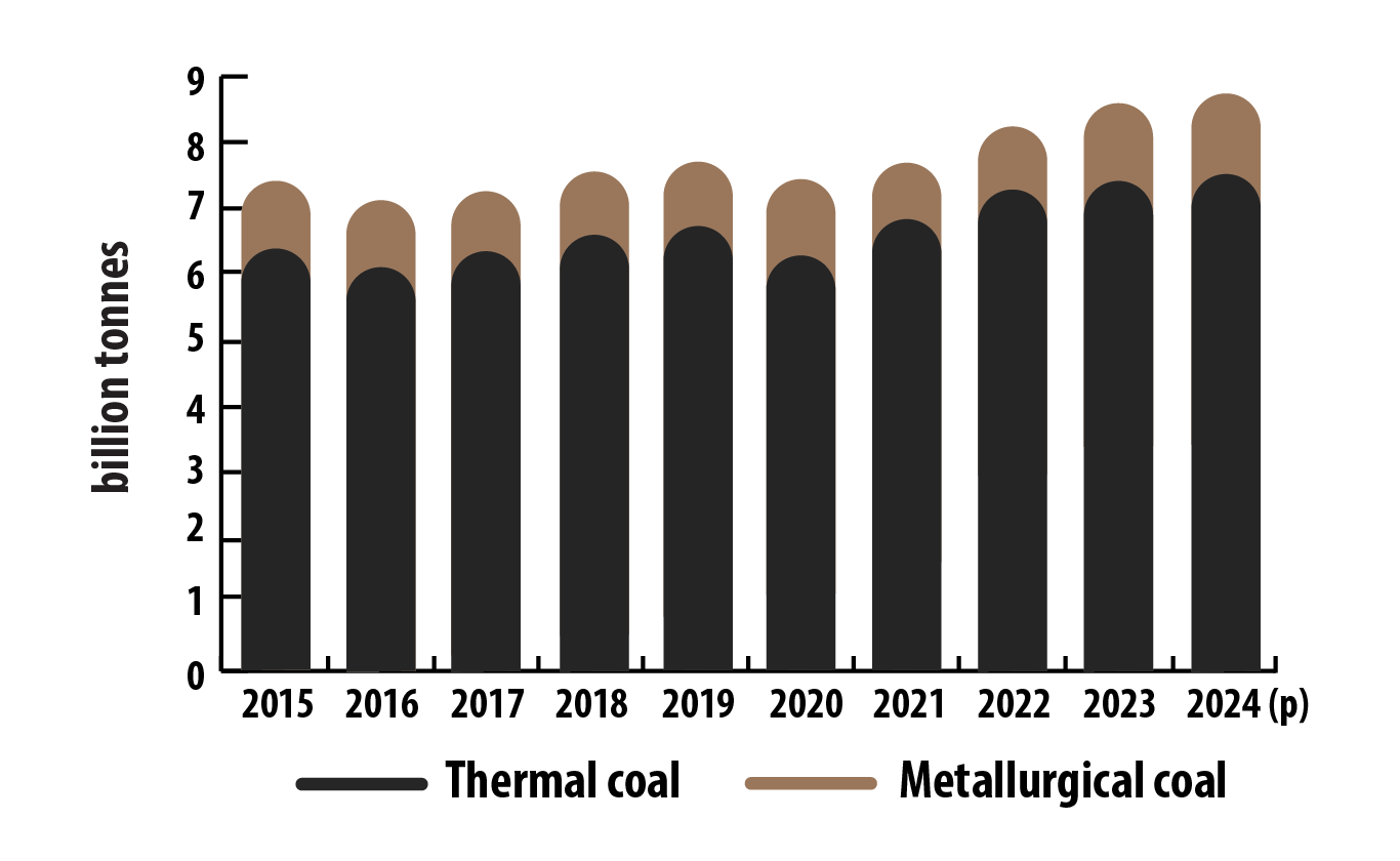 World coal production, 2015–2024 (p)