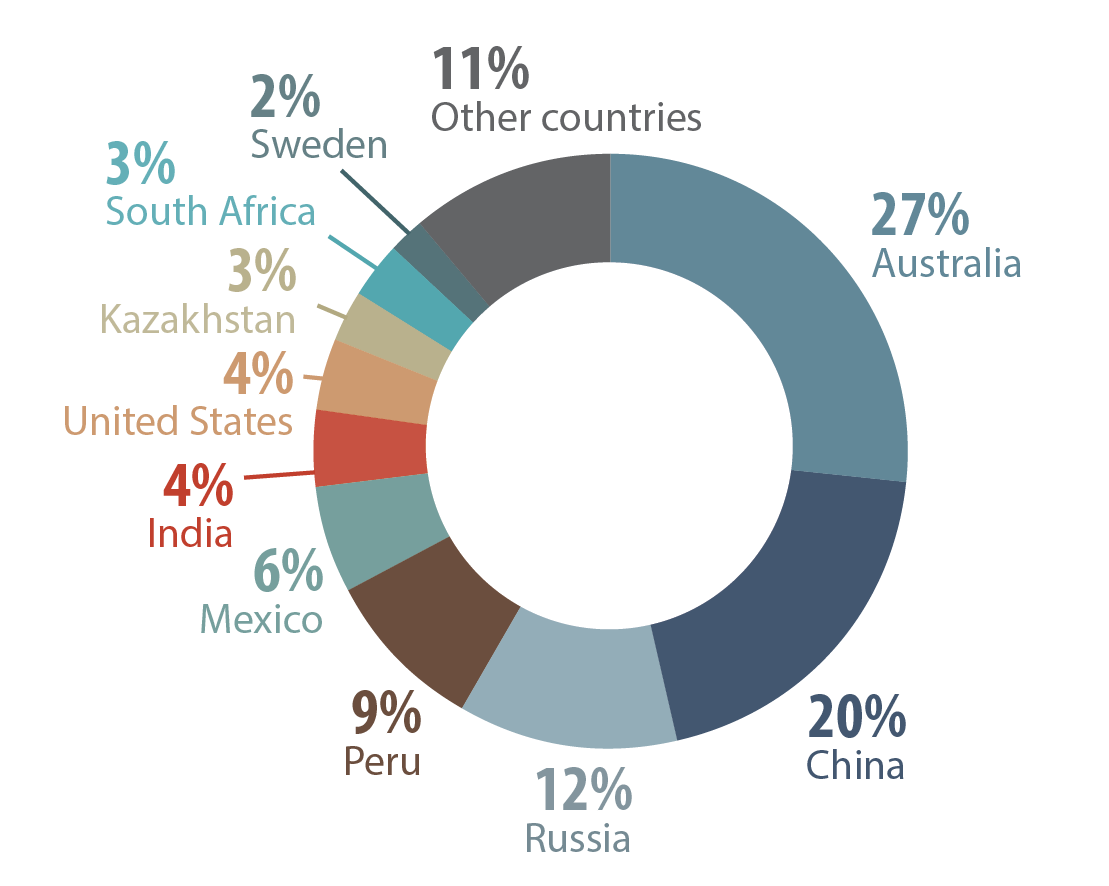 - The United States was the leading source of zinc concentrates (52%), followed by Australia (17%), Peru (14%), Mexico (7%), and Bolivia (4%).